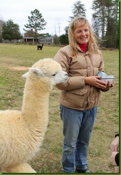 My family took a trip to Pfafftown, NC for a tour of Rita Dee Farm where Alpaca’s are free to graze and are raised for their soft fiber. Denise and Spencer Yost own the farm and Denise offered to give us a tour. Our tour was special because of the new babies that have joined the herd! Winter Bliss (baby Alpaca above) and Hearts Desire are the new babies. They both had their own jackets to keep warm. I was able to bottle feed Winter Bliss as you will see in one of the photos below. The Alpacas are very gentle and a bit shy at times, but they couldn’t resist the allure of food!